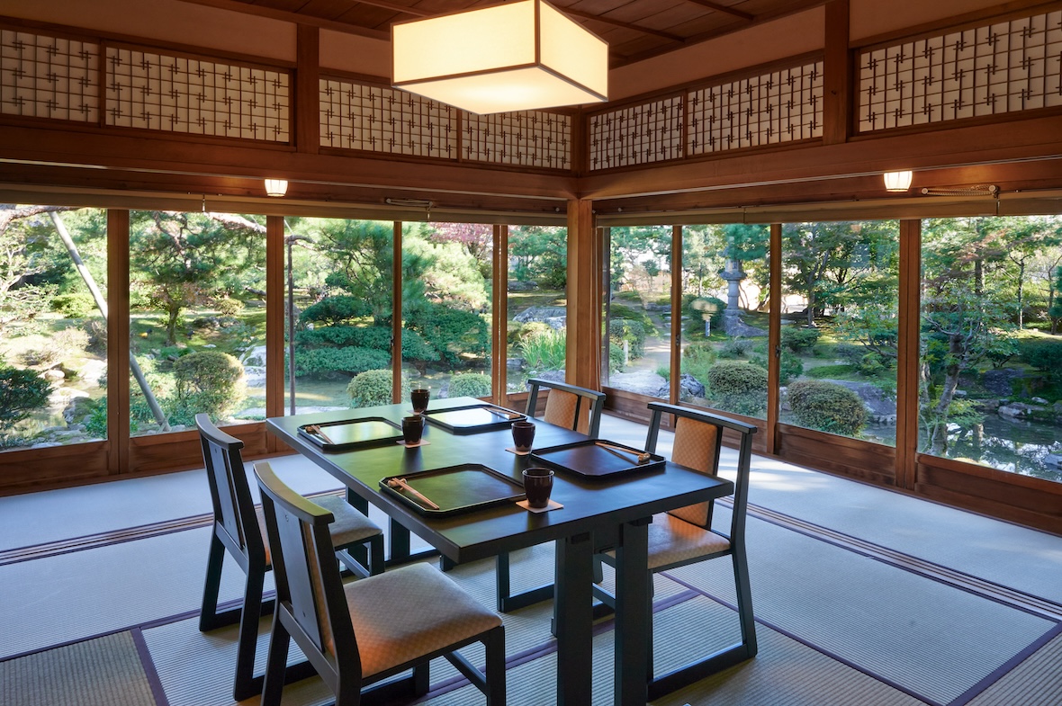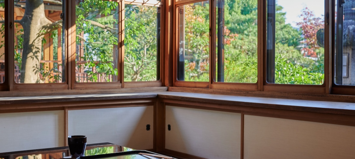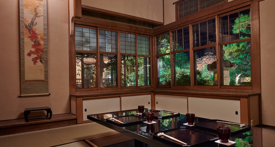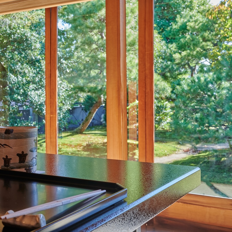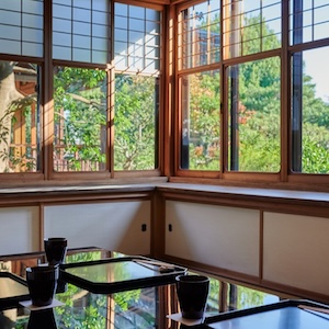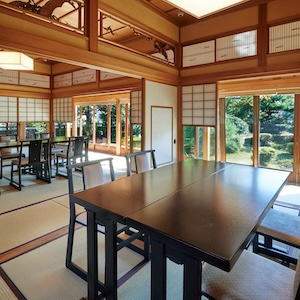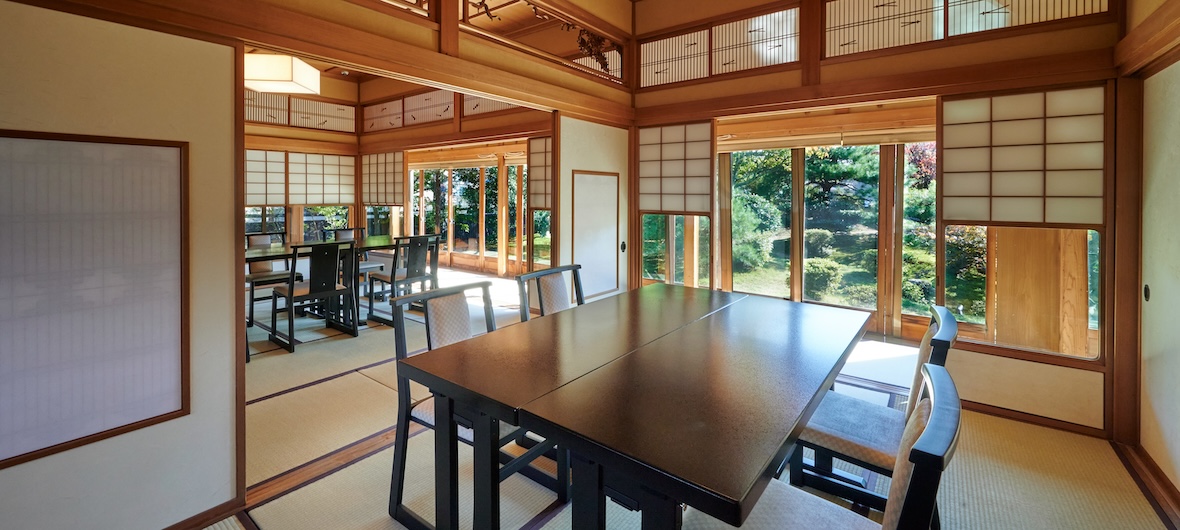 古いものと新しいものが美しく調和した空間。和モダンのしつらえのお座敷と、手入れの行き届いた庭が、いっそう深いリラックスを誘います。四季の自然美が映える座敷では、季の滋味を越前の器にうつし、香りと温度をたいせつに仕立てた御膳を。開放感のある趣豊かな空間で自然の息吹を感じながらいただく一献は、言葉にしがたい満ち足りたひとときです。日常の喧騒を離れ、どうぞ気兼ねなくお過ごしください。